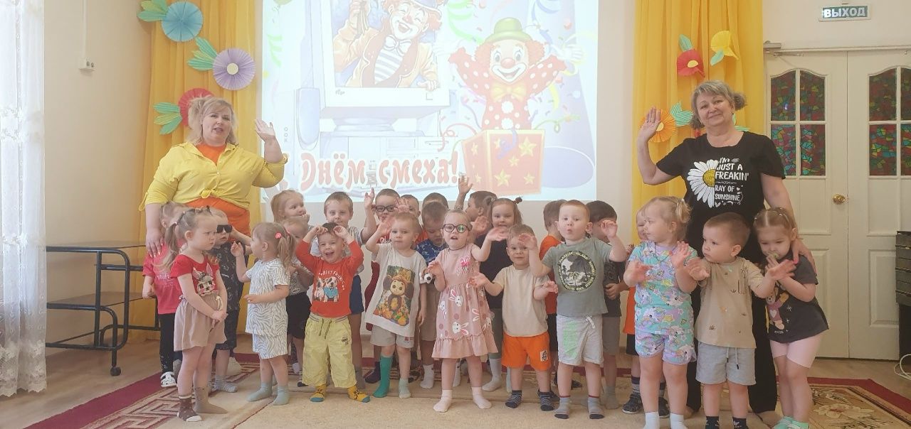 Весело и забавно прошел День смеха в корпусе «Теремок». Это действительно самый забавный, задорный и веселый праздник не только для детей, но и для взрослых. А когда, как не в день смеха можно пошалить, пошутить и повеселиться. С самого утра в саду царила весёлая атмосфера. А на развлечении «Смеяться разрешается» были проведены веселые конкурсы, музыкальные игры и загадки. Дети веселились и очень звонко смеялись с веселыми клоунами Ириской и Клёпой. Играли в игру «Наоборот», музыкальные игры «Руки, плечи, уши, нос…», «Вперёд четыре шага», подвижную шуточную игру «Найди туфельку».